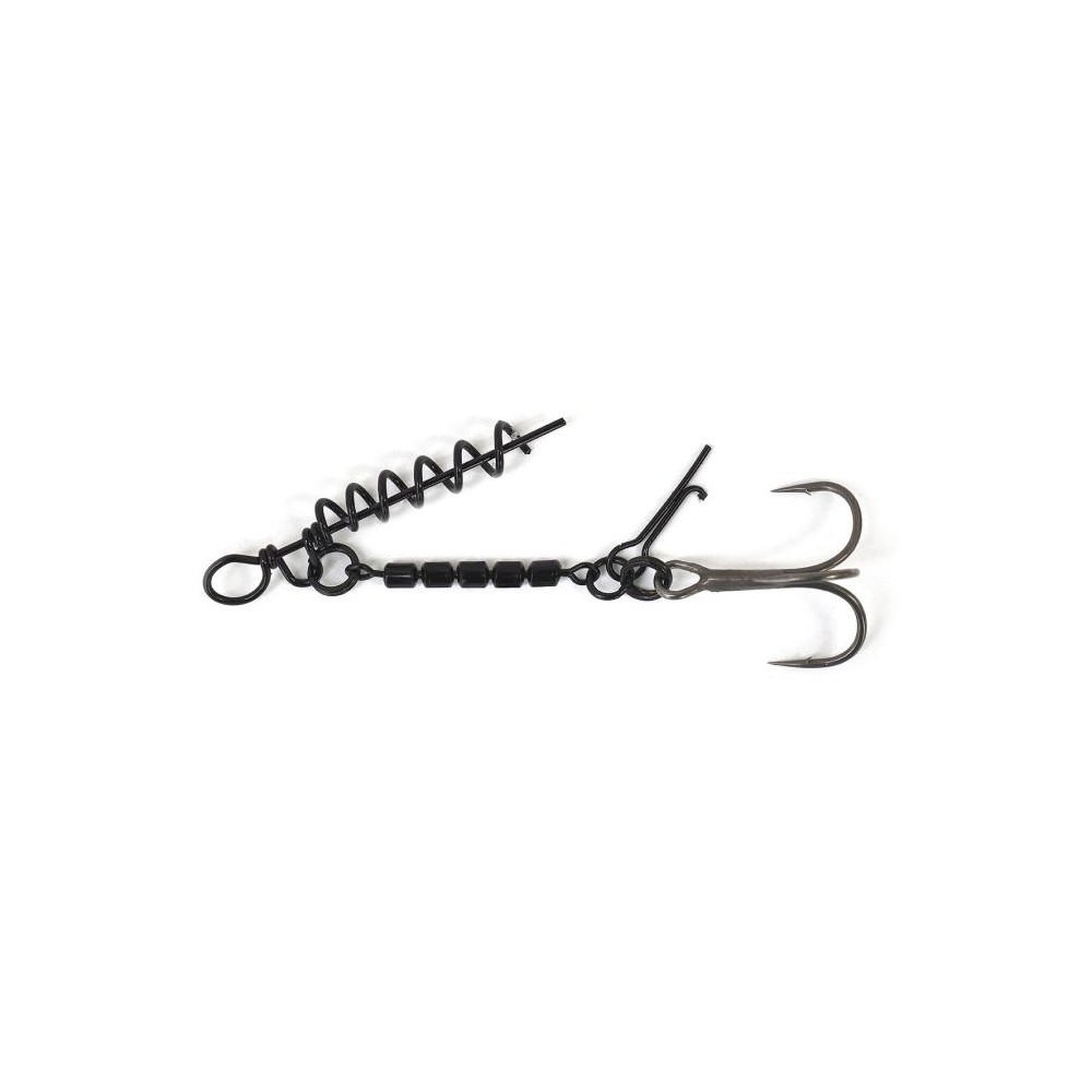 L’Ulti Shallow Rig Long est un montage composé d’émerillons barils assemblés les uns aux autres pour limiter les risques de décrochage en lui laissant la possibilité de tourner sur lui-même sans que le poisson prenne appui sur le leurre pendant le combat. Idéal pour les leurres souples de 15 à 20 cm, il est équipé de deux hameçons triple DECOY YF-33F 1.