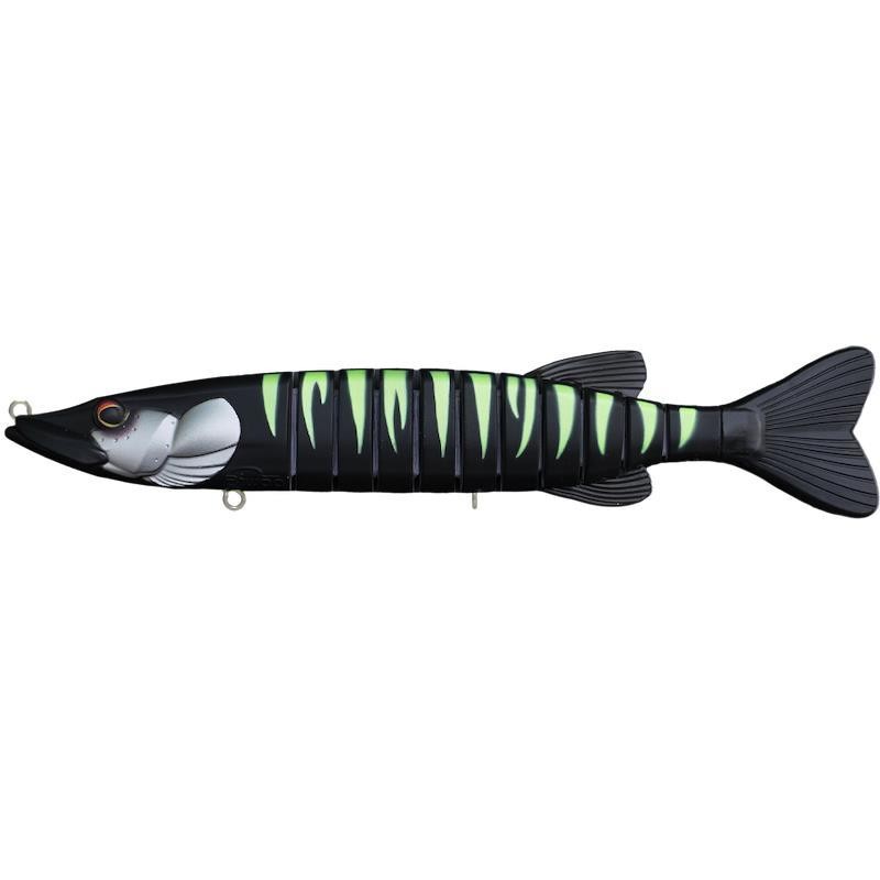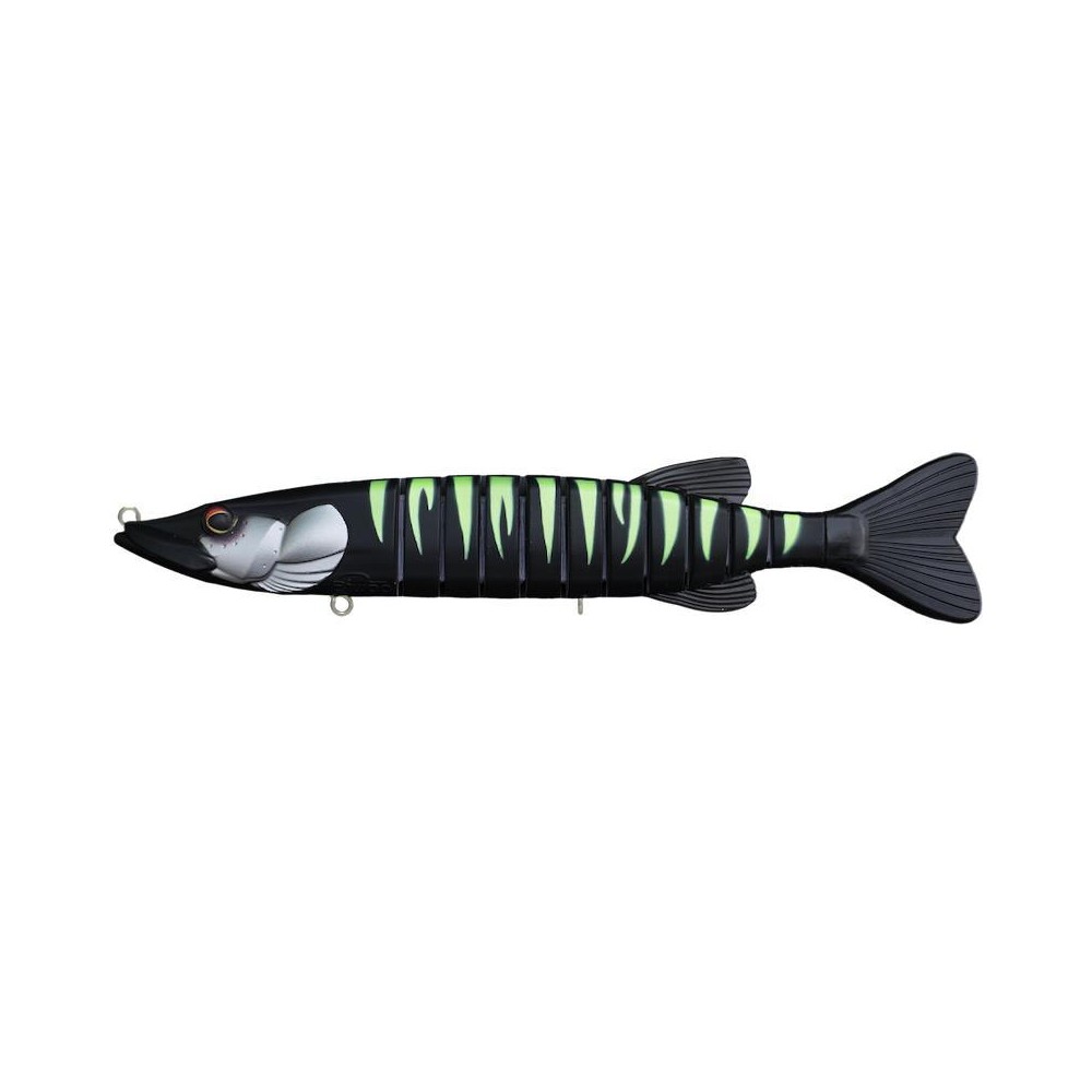 Ce swimbait articulé, composé de 11 segments, offre une nage incroyablement fluide et naturelle, imitant à la perfection un véritable brochet évoluant dans son environnement. Avec ses 35 cm de longueur et ses 185 g, il appartient à la catégorie des big baits, spécialement pensés pour cibler les carnassiers les plus imposants et sélectifs. Son action de nage en S est facile à mettre en place en linéaire, idéale pour déclencher des attaques violentes de la part des brochets les plus méfiants.